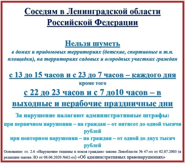 Например, вот так выглядит «закон о тишине» в Ленинградской области!