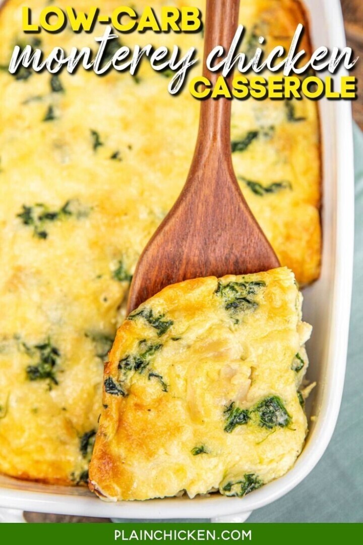 Эта куриная запеканка Монтерей с низким содержанием углеводов неоднократно повторялась в нашем доме. Это серьезно вкусно! Курица, шпинат, сыр Монтерей Джек, яйца, сметана и жирные сливки. Приготовление занимает всего несколько минут, а уже через 30 минут оно готово к употреблению. Приготовьте зеленый салат или спаржу, и ужин готов! Вы никогда не будете скучать по углеводам!