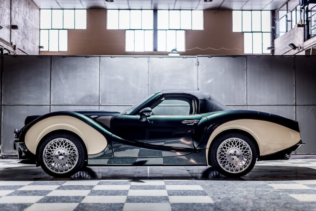 Благодаря волнистой и объемной конструкции крыло создает атмосферу классического автомобиля, и нет никаких следов базового автомобиля. Общая длина на 29 см длиннее, ширина на 5,5 см шире, а общая высота на 1 см ниже для базового автомобиля. Цвет кузова можно выбрать в соответствии с предпочтениями заказчика, и кажется, что можно заказать уникальные цвета, такие как "Россо Корса" и "Опсидиан Черный", а также матовую окраску.