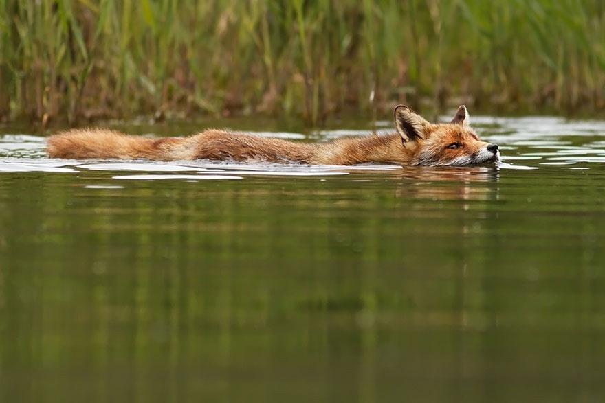 33. Лисы отлично плавают и могут охотиться на рыбу на мелководье.