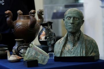 Большинство предметов, среди которых фреска Геркулеса в детстве, борющегося со змеей, которая была украдена из Геркуланума, и бронзовый бюст мужчины, датируемый первым веком нашей эры, были изъяты из частной коллекции американского миллиардера Майкла Стейнхардта, по словам Мэтью Богданоса, главы отдела по борьбе с незаконным оборотом древностей окружной прокуратуры Манхэттена.