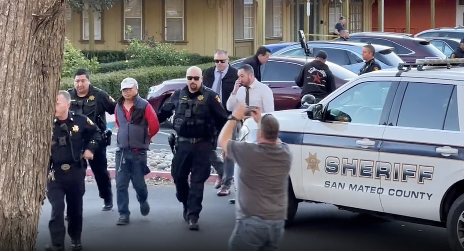 Подозреваемый стрелок, идентифицированный властями как Чуньли Чжао, 67 лет, был арестован в течение нескольких часов после первой стрельбы, с видео, снятым NBC Bay Area, на котором показано, как он сдается властям на подстанции шерифа.