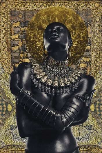 Повышение осведомленности о социально-политических проблемах, которые затрагивают его сообщество и общество, является еще одной его ролью как художника, говорит Океларин. Он говорит, что его путешествие, культура и опыт мужчины йоруба, живущего в Великобритании, являются основой его работы, которая охватывает такие темы, как калечащие операции на женских половых органах, маскулинность, мистицизм, идентичность и раса.Его мифологические образы, а также другие проекты, такие как сериал 2020 года "Она украшена", используют концепцию многослойности, когда предметы буквально украшены слоями африканских бус и украшений. Океларин также использует цифровую визуализацию, накладывая на фотографии слои с элементами своего культурного наследия, такими как ткань и текстуры. Это смешение различных процессов - обычной фотографии с искусственным интеллектом - "открыло для него большие возможности для воображения".