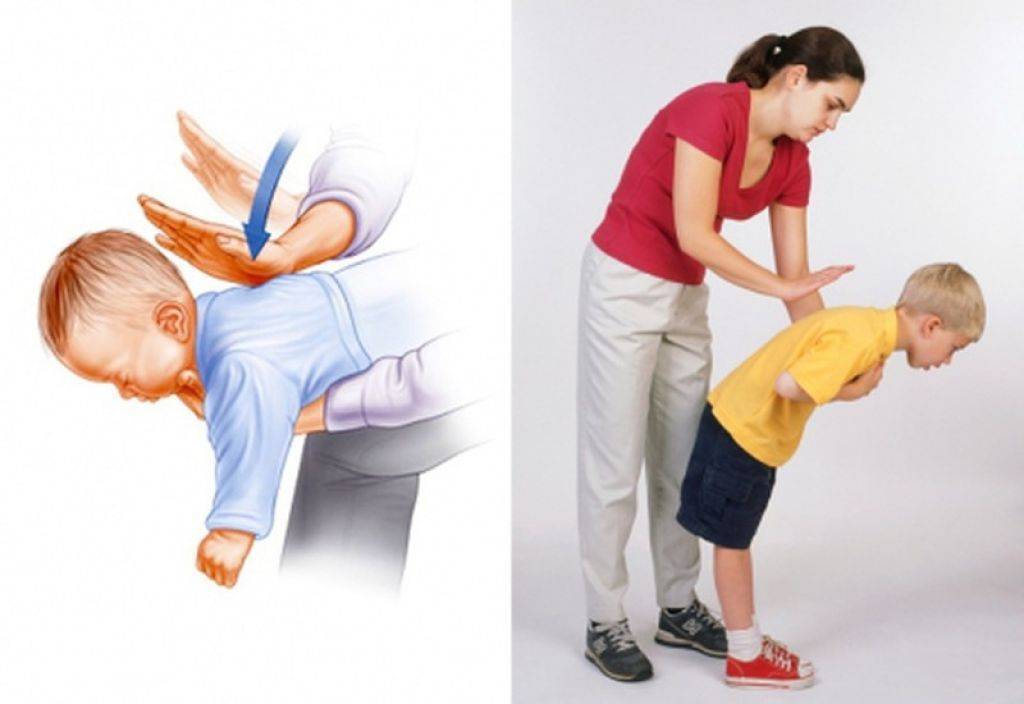 1.Ребенок не дышит и не кашляет, сознание при этом пока сохранено: Наклоняем ребенка головой вниз и делаем 5 ударов по середине спины, переворачиваем и делаем 5 нажатий на середину грудины. У старших деток проводим приём Геймлиха (обхватываем ребенка сзади, и двумя руками нажимаем с силой на нижнюю часть грудины). Выполнить 3 таких цикла, если нет эффекта - продолжать, и дать команду вызвать скорую медицинскую помощь.