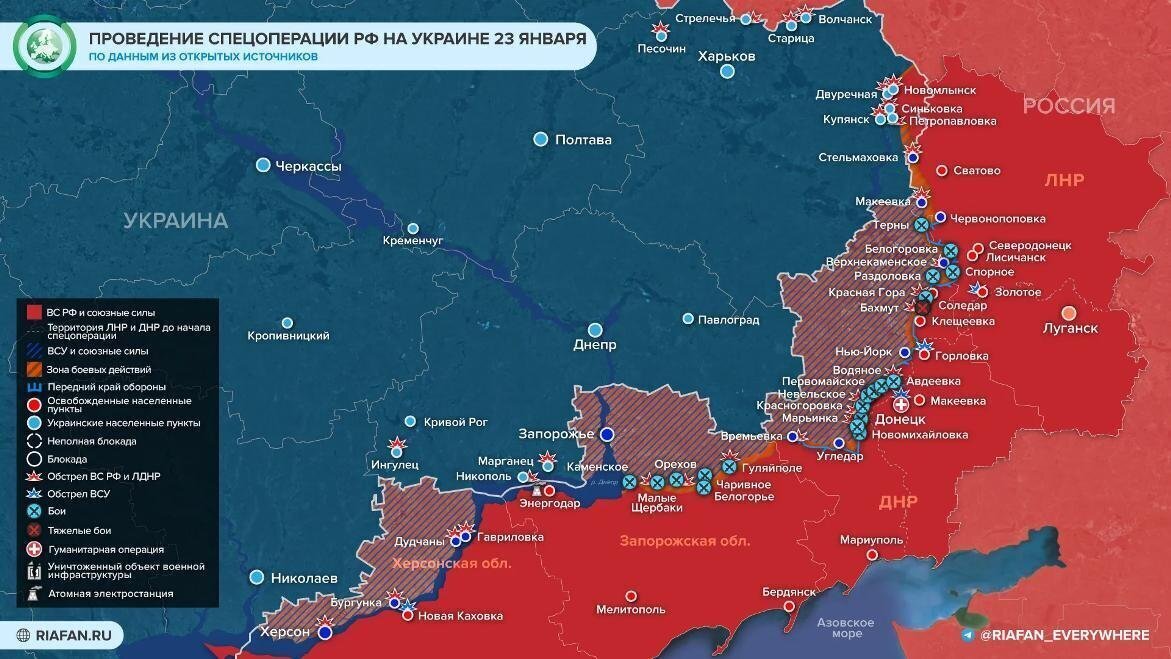 Со стороны Соледара, пару дней назад, Вагнер выбил противника из Краснопольевки. Следующим пунктом будет Николаевка. Здесь Вагнеровцы продвигаются к Северску, но уже с юга.