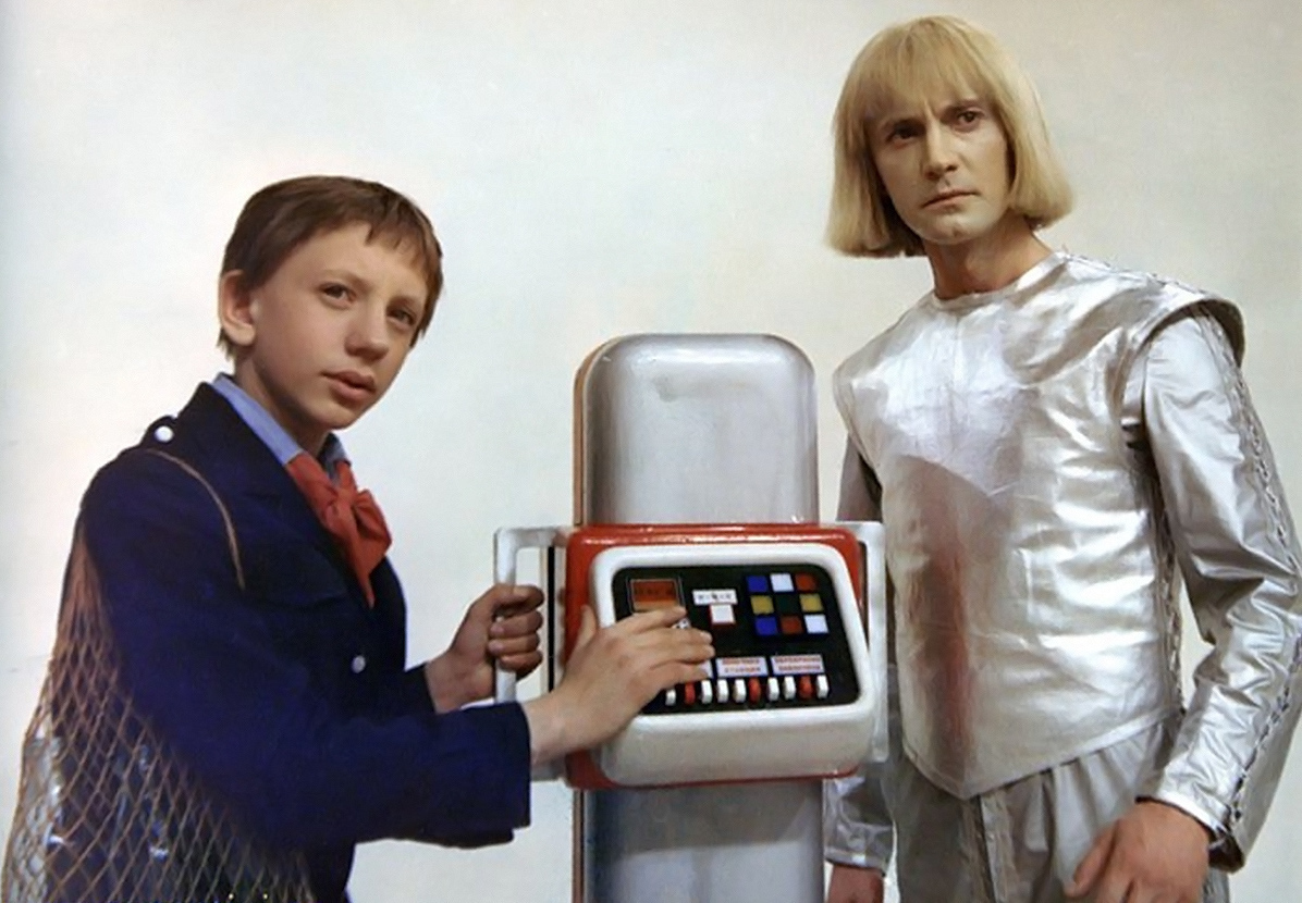 Коля Герасимов, машина времени и робот Вертер, погибший в последствии от рук космических пиратов