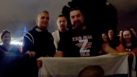 В видео, размещенном на YouTube известным сторонником Владимира Путина, Срджан Джокович позирует с фанатом возле мельбурнской арены Рода Лейвера. Мужчина носит на рубашке символ «Z» и держит российский флаг с изображением Путина. «Да здравствует Россия, — говорит он.