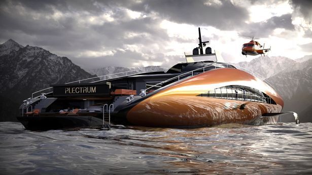 Plectrum, детище итальянской фирмы Lazzarini Design Studio, простирается на 74 метра и возвышается над волнами с помощью системы подводных крыльев.