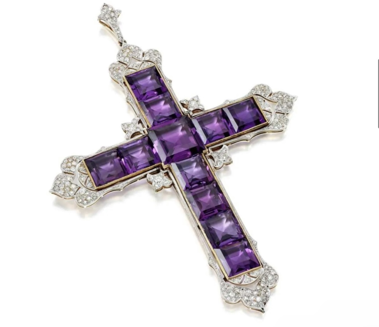 На недавнем аукционе Sotheby's представитель Кардашьян приобрел крест Attalah Cross, аметистовый кулон, сделанный ювелирной компанией Garrard для Наима Атталлаха, CBE. Согласно пресс-релизу, предоставленному Page Six, этот предмет является единственным в своем роде и был одолжен Диане - единственному человеку, который когда-либо его носил - для нескольких случаев. Она знаменито надела его на свою собственную нитку жемчуга на благотворительном мероприятии в Лондоне в 1987 году, и хотя оно выглядит как воплощение безвкусного излишества 80-х годов, оно было разработано в 1920 году!