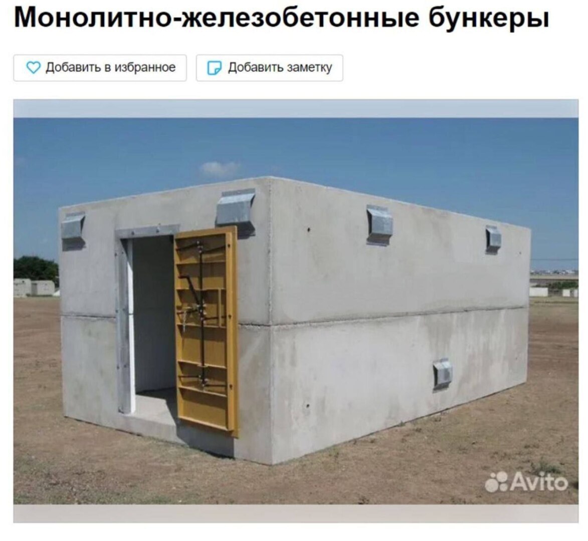 На авито начали продавать монолитно-железобетонные бункеры. Спрос рождает предложение , если продают , значит кому-то нужны.