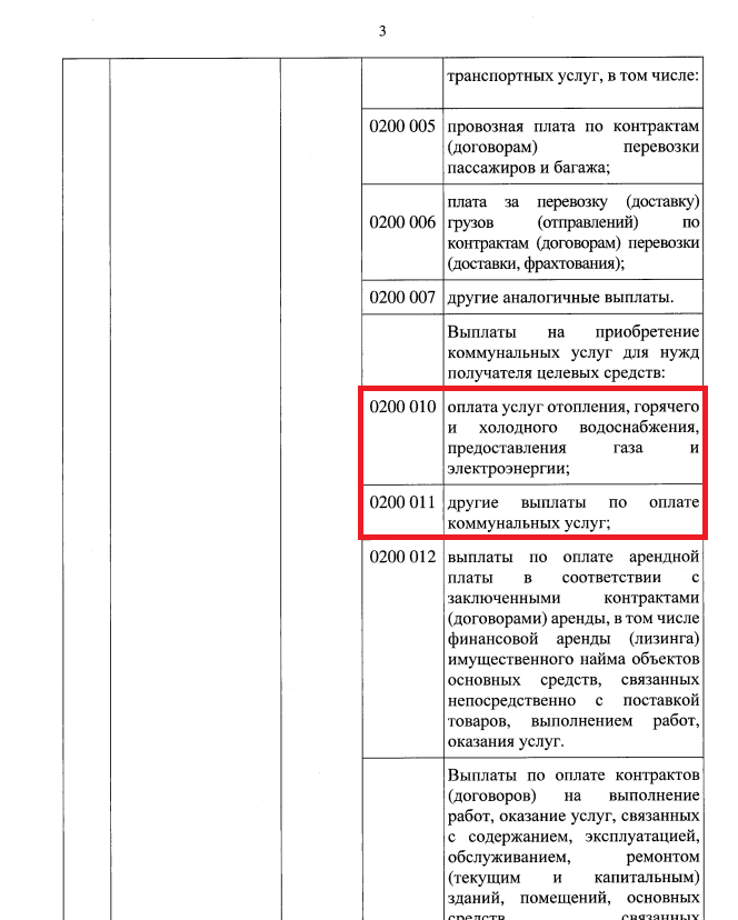 На стр. 3 как раз написано по коду 0200 010 - "Оплата услуг отопления, горячего и холодного водоснабжения, предоставления газа и электроэнергии". А по коду 0200 011 еще далее: "Другие выплаты по оплате коммунальных услуг". Поэтому, за нас уже все оплачено.