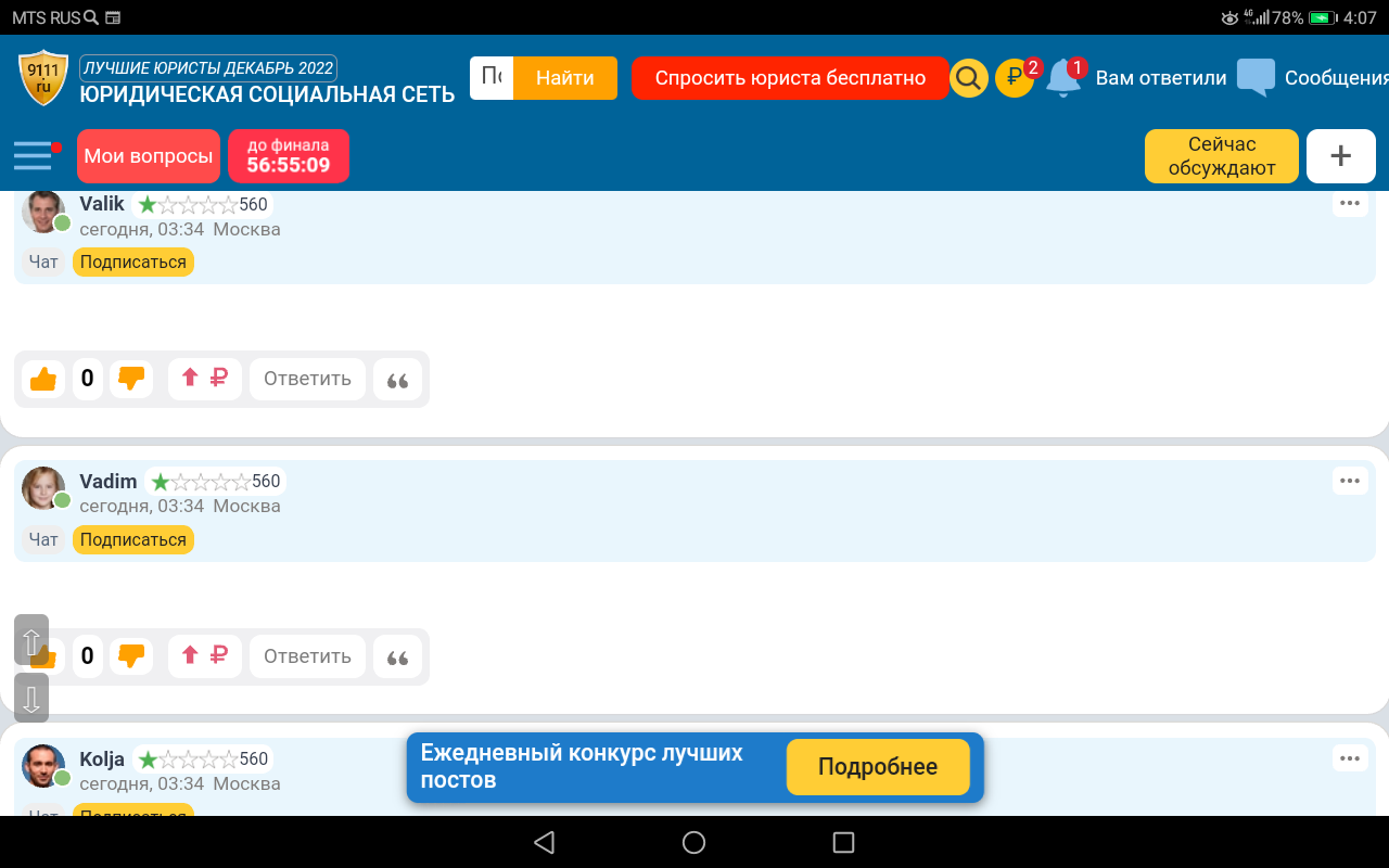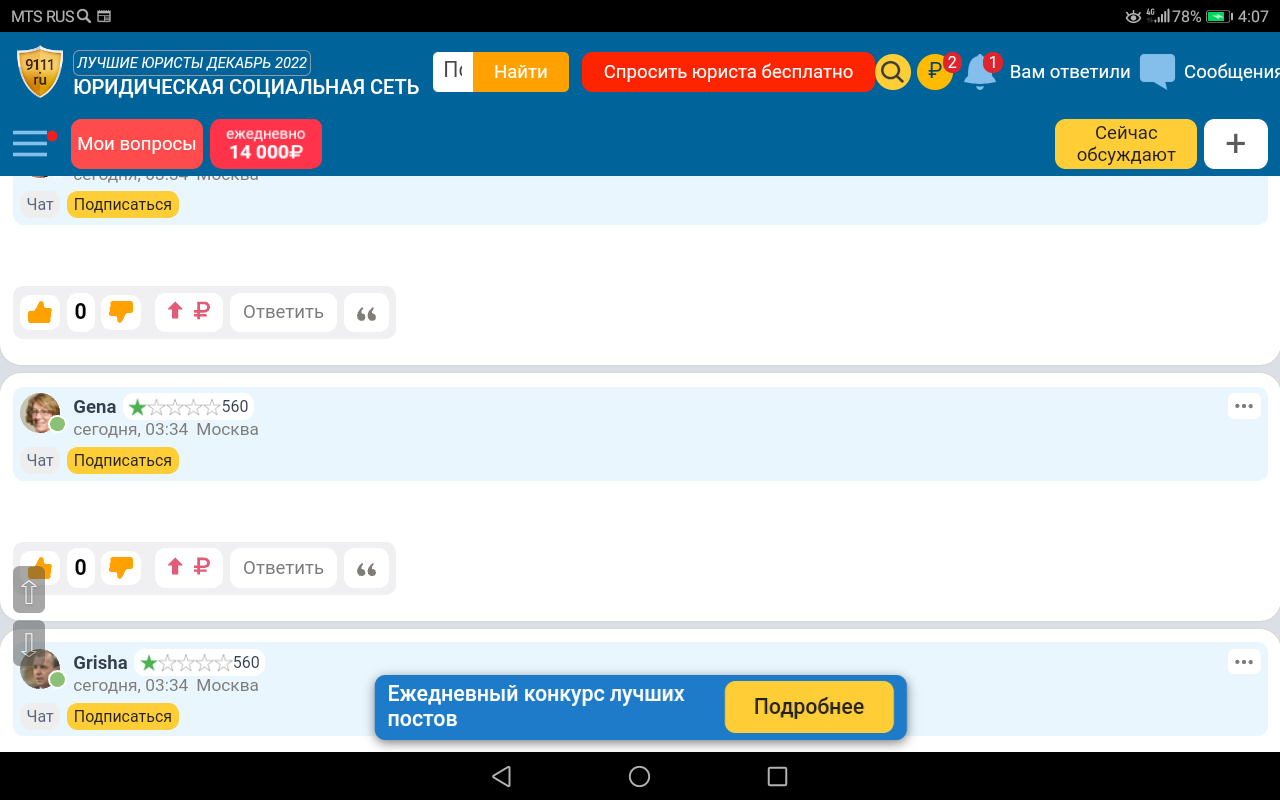 Вот такое сообщение от двух разных людей.Дмитри и Александр под разными постами