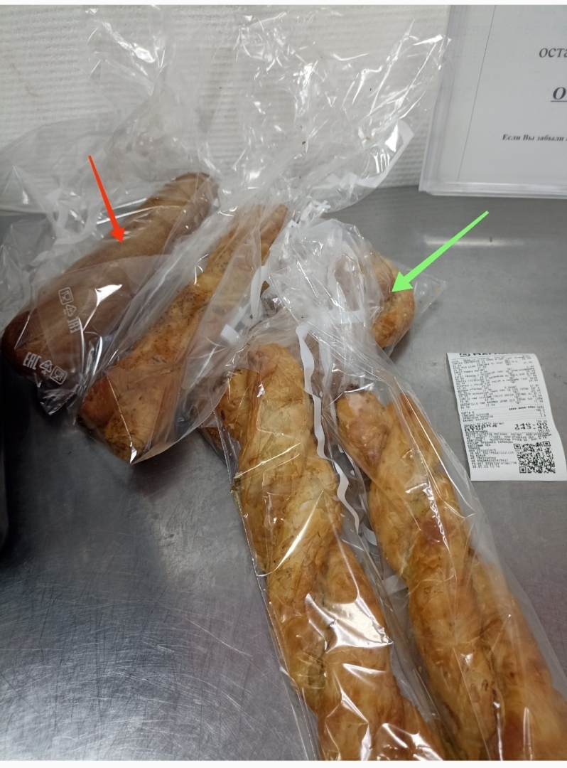 Красная стрелка – половинка "багета ржаного" с чесночным маслом.