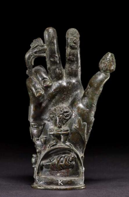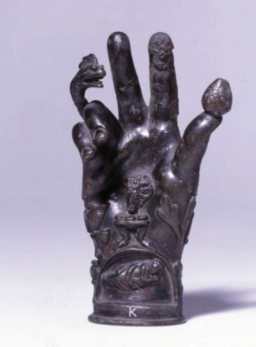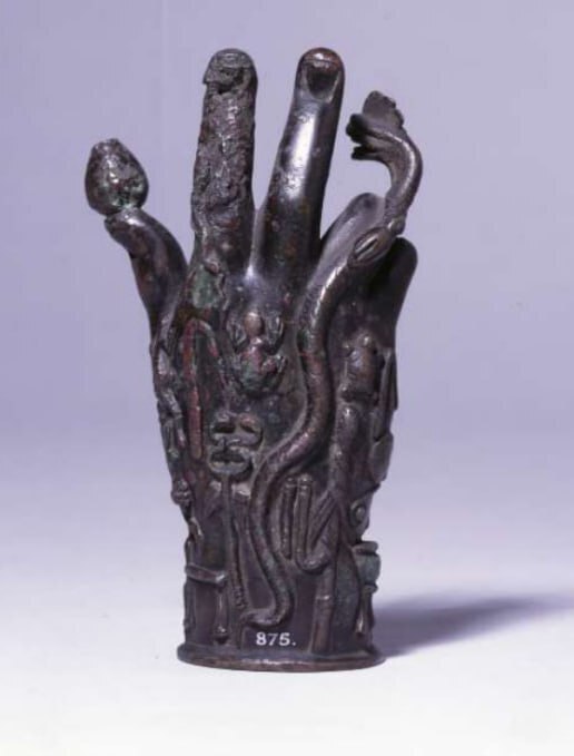 Эта рука, использовавшаяся в поклонении Сабазию, вероятно, прикреплялась к столбам для процессий.