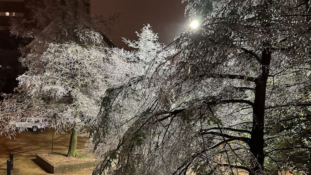 В некоторых местах скопление льда может достигать 1 дюйма, покрывая линии электропередач, дороги и тротуары.