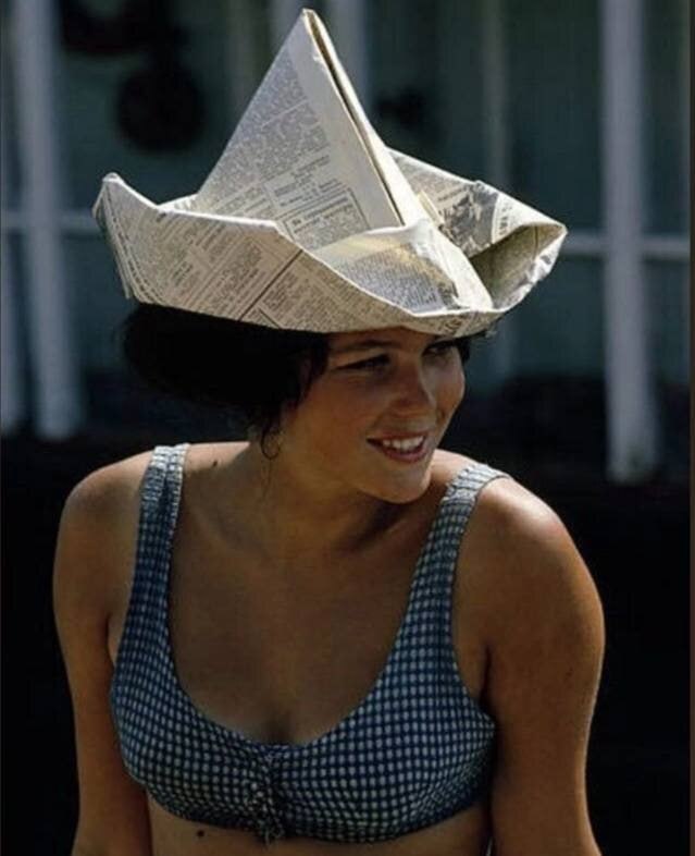 Девушка в шляпе из газеты г. Хабаровск, 1970-е, СССР. Такие шляпы я уже очень давно не видел, наверняка остались те кто ещё может такую шляпу сделать. Хотя сейчас в Ютубе думаю можно найти видео как сделать такой головной убор.