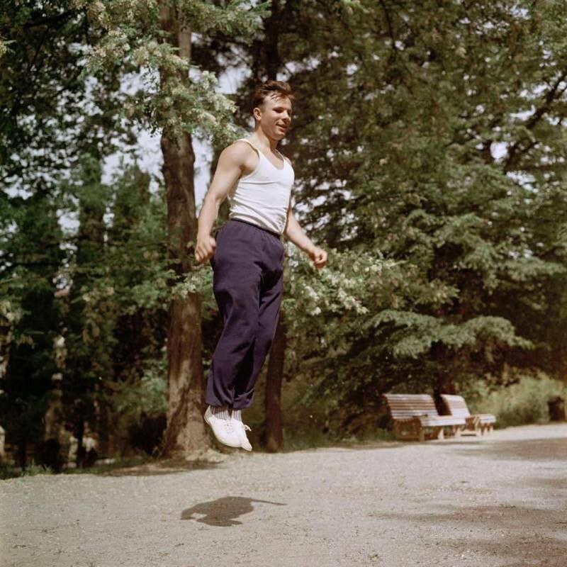 Юрий Гагарин на утренней разминки в Сочи, 1961 год.