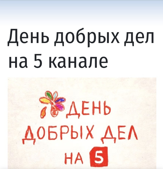 Это девиз акции на Пятом канале, которая проходит каждый четверг. Проводят ее в сотрудничестве с фондом «Подари жизнь» . Речь идёт о детях. Детях которые тяжело больны, и на лечение которых требуются огромные деньги. И речь идёт о днях, о часах, о возможности просто выжить или получить очень дорогое лечение, для того чтобы иметь возможность начать жить нормальной жизнью.