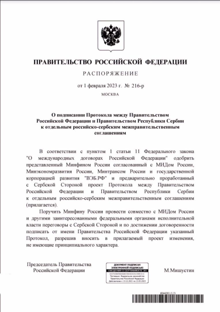 Правительство России недавно одобрило проект протокола, который позволит Сербии рассчитываться с Российской Федерацией по кредитам в рублях. Это решение было принято после двух кредитов, предоставленных Сербии в 2013 году, а также соглашения об урегулировании задолженности Югославии. Этот шаг подчеркивает прочные отношения между Россией и Сербией, основанные на взаимном доверии и уважении.