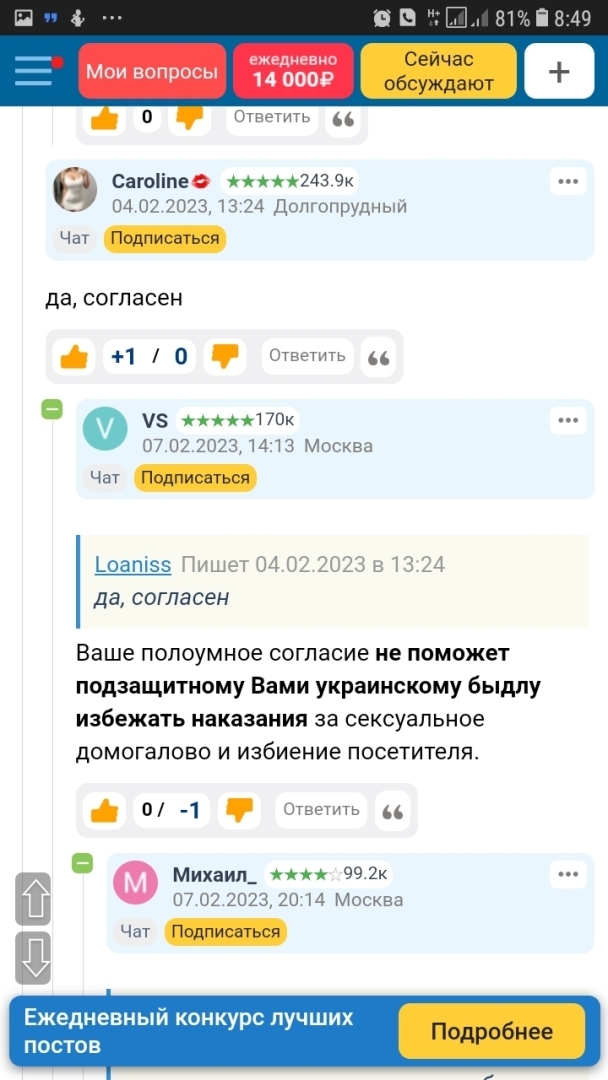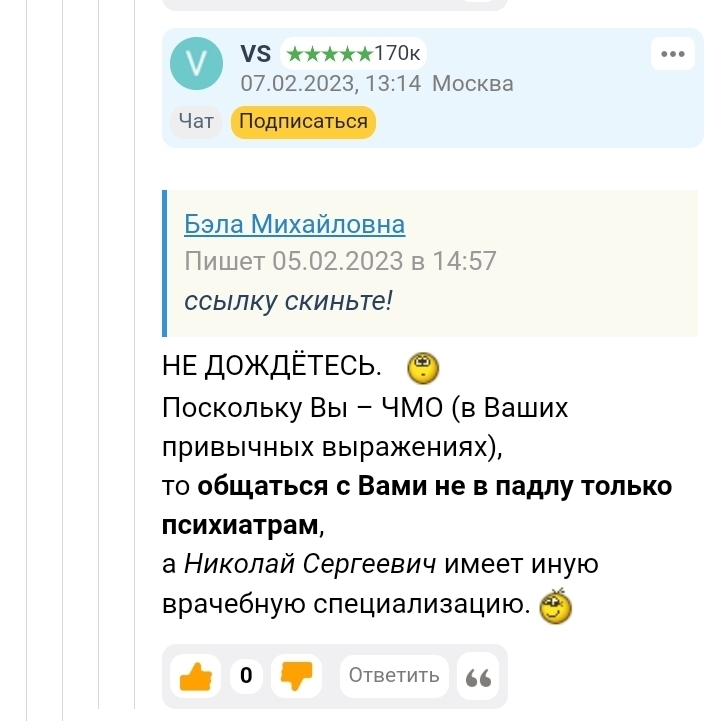 Мои ответы хамам и недоумкам, которые Вы насобирали - АДЕКВАТНЫЕ.