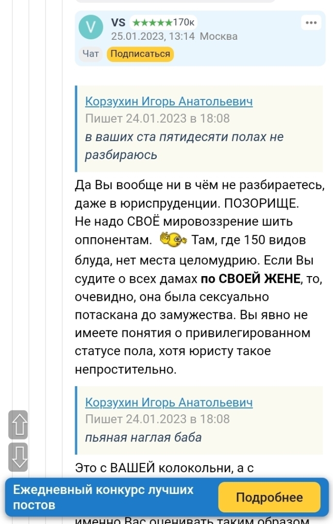 Ваше голословие (как и по Вашей ссылке публикации фэйка на другом Ресурсе) проигрывает на фоне неопровержимых фактов, закреплённых на записи. Кстати, при обсуждении Публикации со мной согласились ВСЕ умственно состоятельные собеседники, а с Вами - лишь морально ущербные, да алкаши.