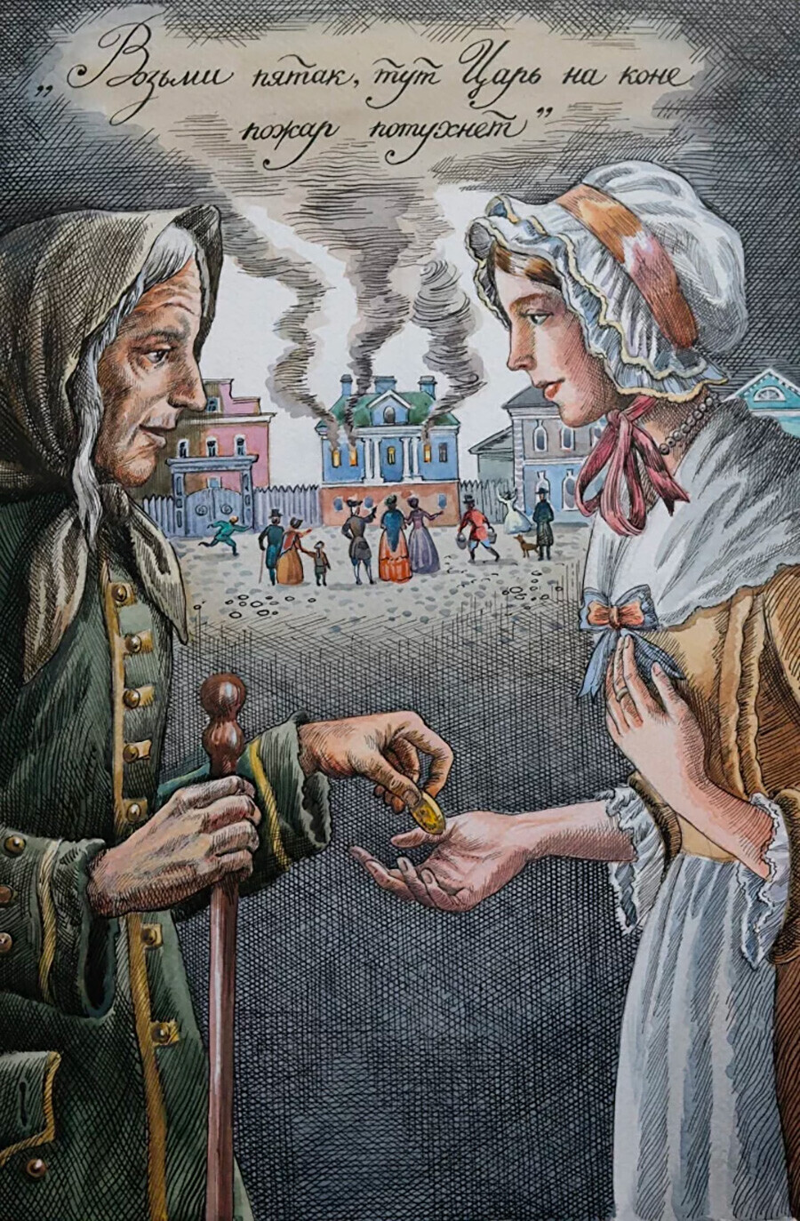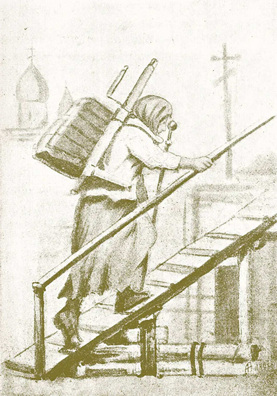 Святая Ксения поднимает кирпичи на колокольню церкви Смоленской Богоматери. Из книги Э. Рахманина "Блаженная Ксения, раба Божья".