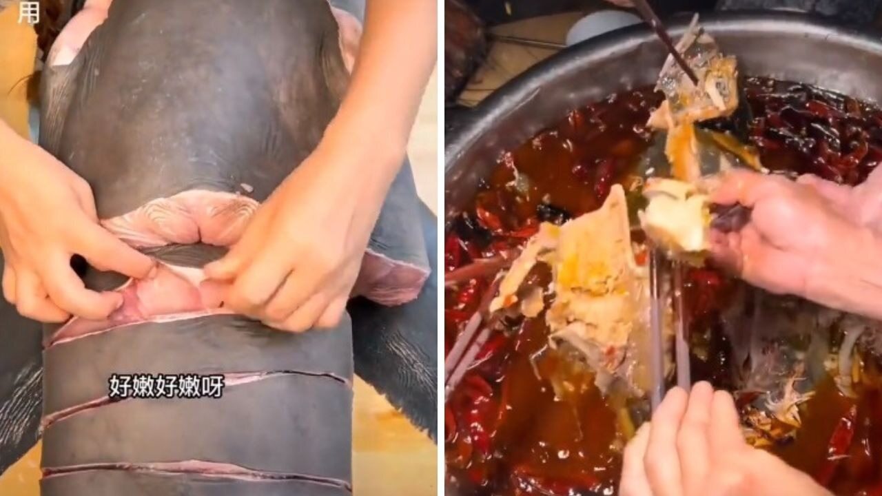 Китайский кулинарный блогер, заснявший, как он разделывает большую белую акулу, посыпает ее приправами и ест, была оштрафована почти на 20 000 долларов.