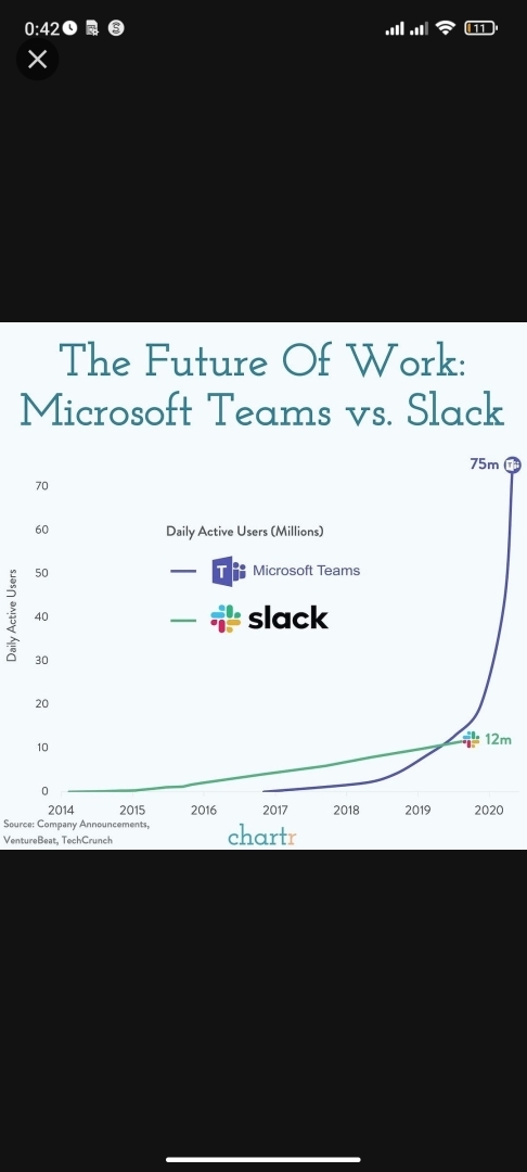 Что ж, есть график, который я видел, который, по сути, может доказать, что есть люди, которые знают Microsoft Teams и не знают, что Slack был пионером в этой отрасли.