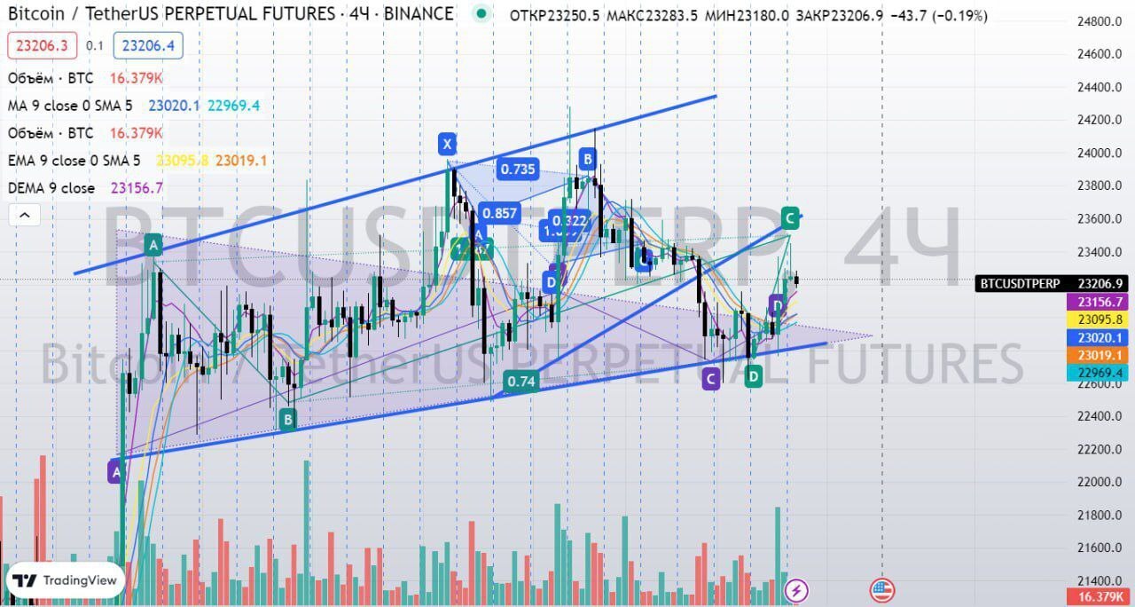 В скором времени цена пойдет на ретест локального сопротивления у уровня $23 500, там мы увидим первый неудачный закреп и дальнейшую консолидацию под самим сопротивлением. После она будет пробита и цена будет плавно идти минимум к уровню $23 850.