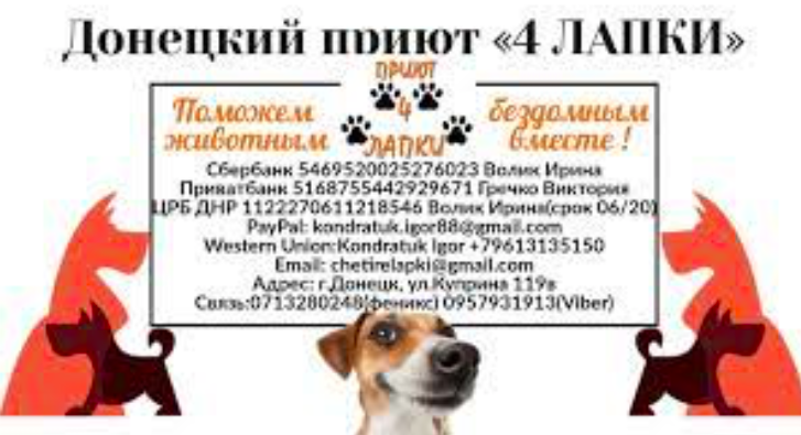 Донецк. Думаю, что все жители Донецка знают о существовании приюта для бездомных животных под названием "Четыре лапки".