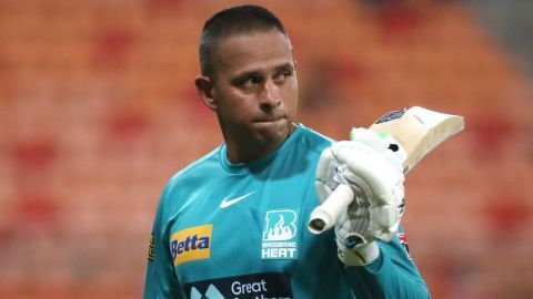 Хаваджа приветствует толпу во время матча Лиги Биг Баш между Сидней Тандер и Брисбен Хит в прошлом месяце.