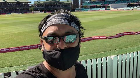 Кришна Кумар участвует в тестовом матче 2021 года между Австралией и Индией в Сиднее.