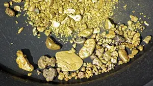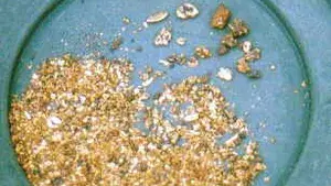 Жилы, обогащенные золотом, образуются, когда золото выносится с больших глубин вместе с другими минералами в водном растворе, а затем выпадает в осадок. Золото в породах обычно встречается в виде невидимых вкрапленных зерен, реже в виде достаточно крупных чешуек, которые можно увидеть, и еще реже в виде масс или прожилков. Кристаллы диаметром около 2,5 см (1 дюйм) и более были обнаружены в Калифорнии. Массы, некоторые из которых составляют порядка 90 кг (200 фунтов), были зарегистрированы в Австралии.