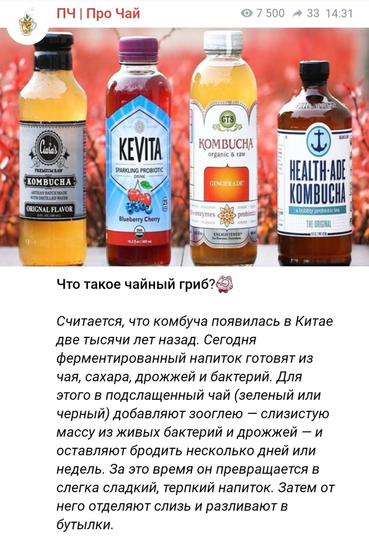 Во многих странах, известный нам как Чайный гриб, Комбуча, продается и в виде гриба в аптеке, и в виде самого настоя.