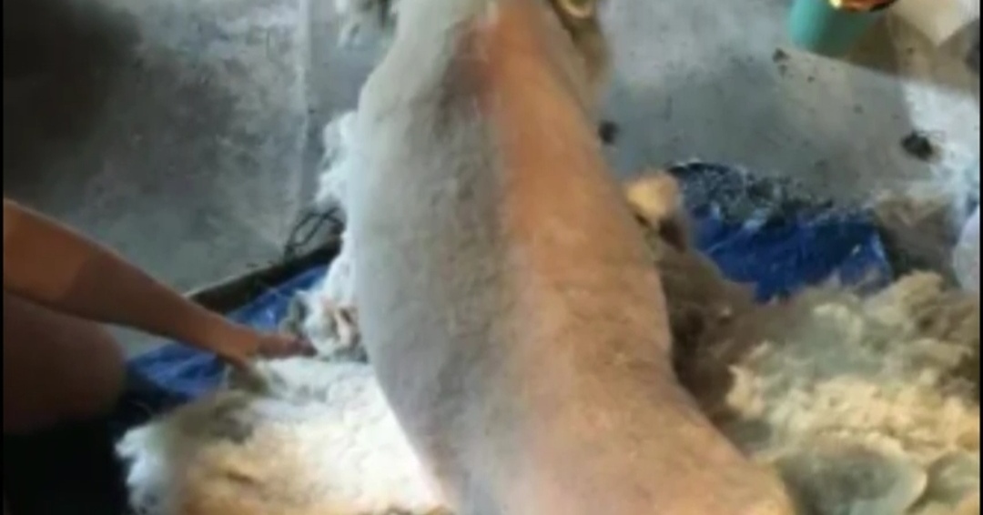 После длительного и утомительного процесса бритья, с него удалили почти 15 кг шерсти!