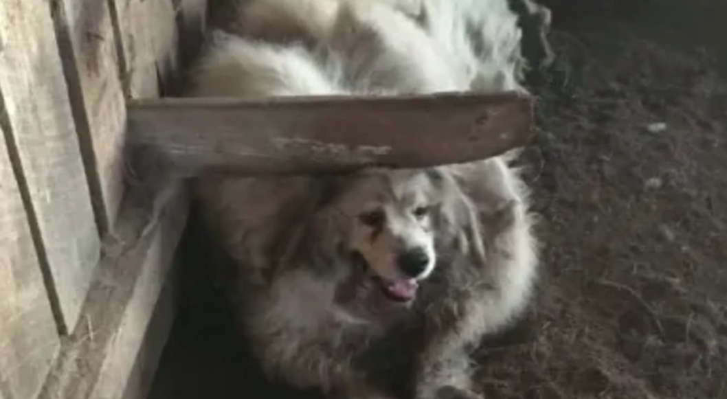 Сарай, где содержалась собака, был настолько грязен и забит фикалиями, что трудно было даже открыть дверь. Помимо грязного помещения, сама собака была в очень запущенной состоянии.