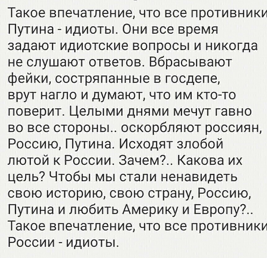 фальшивка это вы, это вы занимаетесь дешевой манипуляцией: кто не за путина, тот обязательно за Америку и Европу.