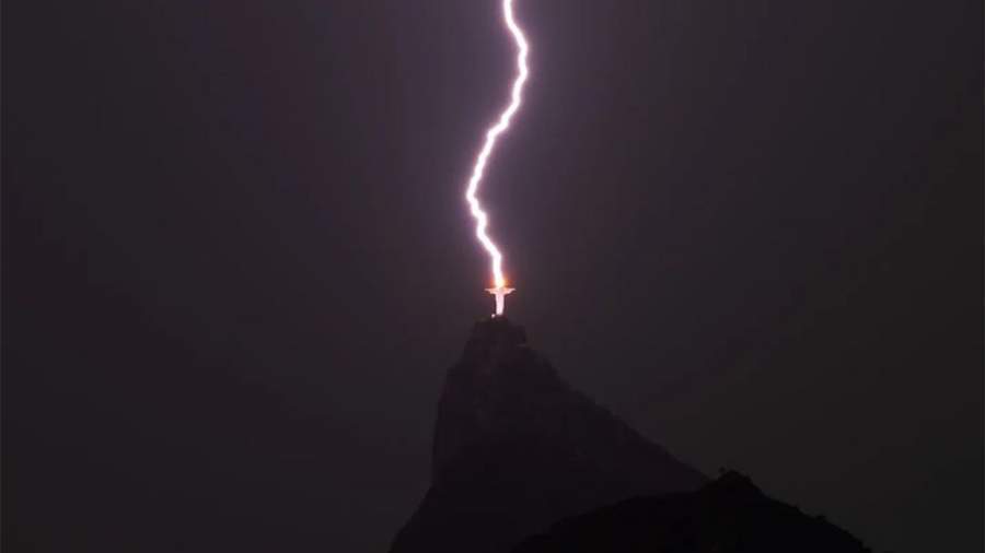 В статую Иисуса Христа в Рио-де-Жанейро ударила молния!