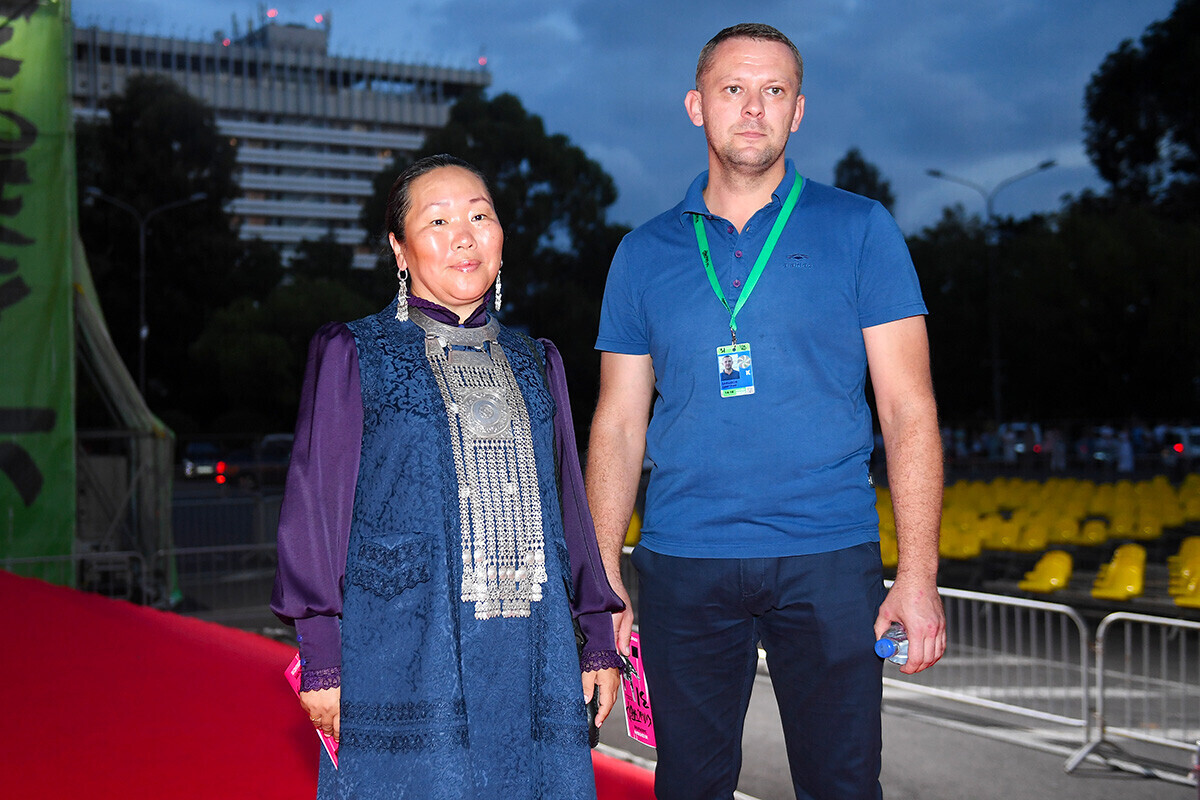 Режиссер фильма "Пугало" Дмитрий Давыдов и якутская актриса Валентина Романова-Чыскирай на кинофестивале "Кинотавр" в Сочи