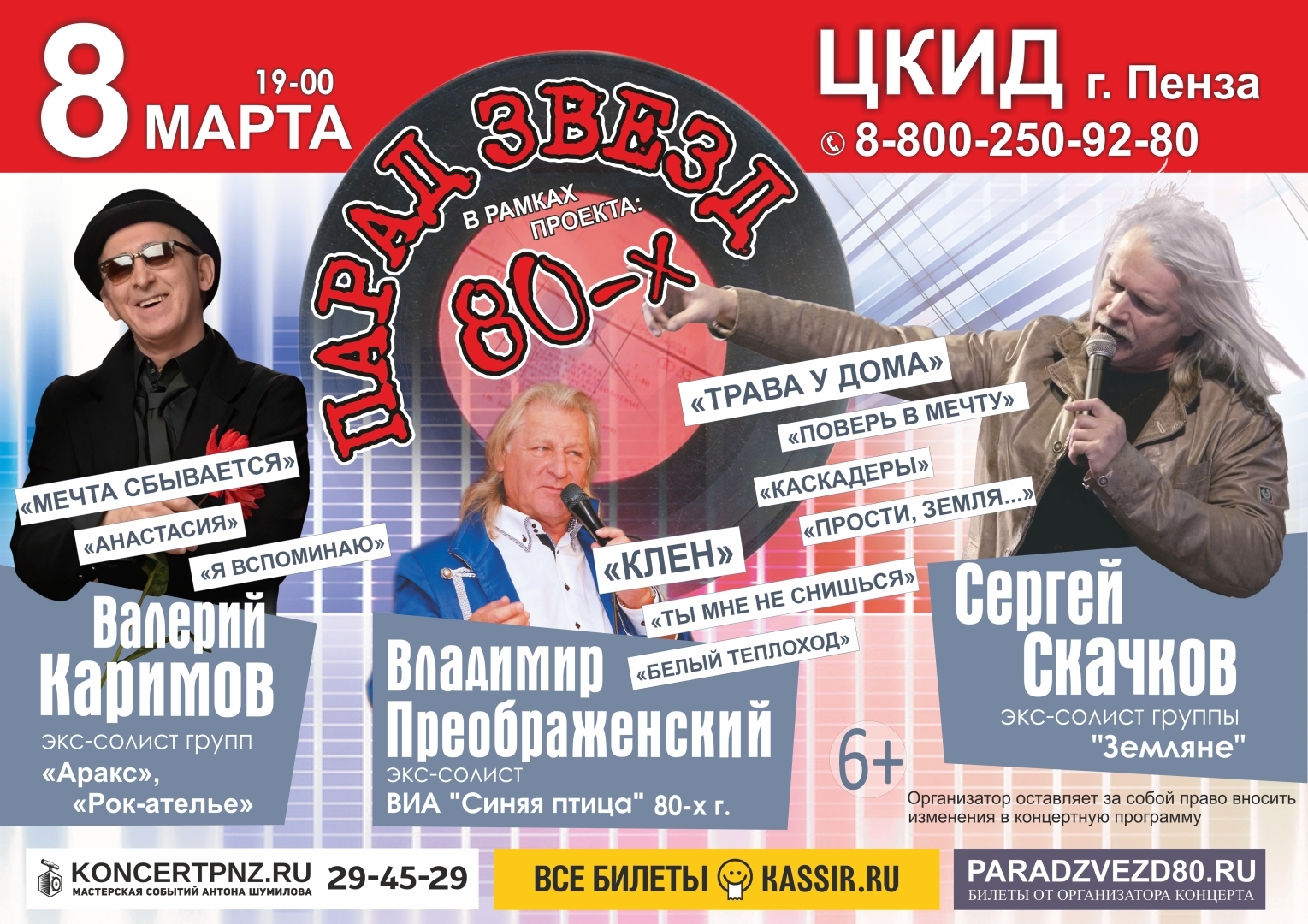 8 марта в Центре досуга и культуры Пензы состоится концерт«Парад звезд 80-х» с участием солистов и экс-солистов ансамблей: