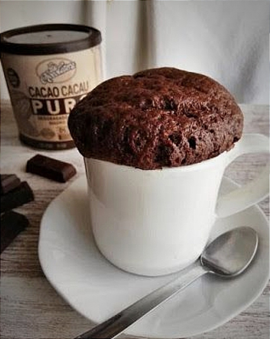 3. Ставим в микроволновку на 3 минуты и ждём пока кекс поднимется в чашке.