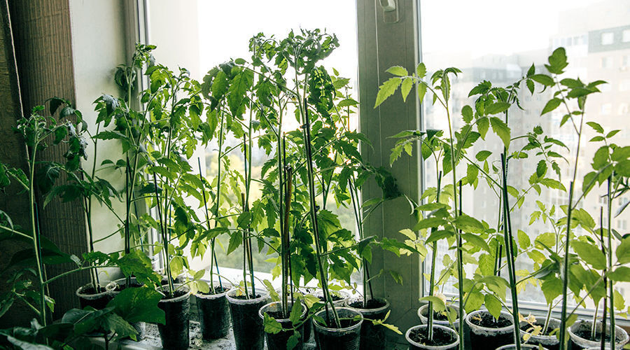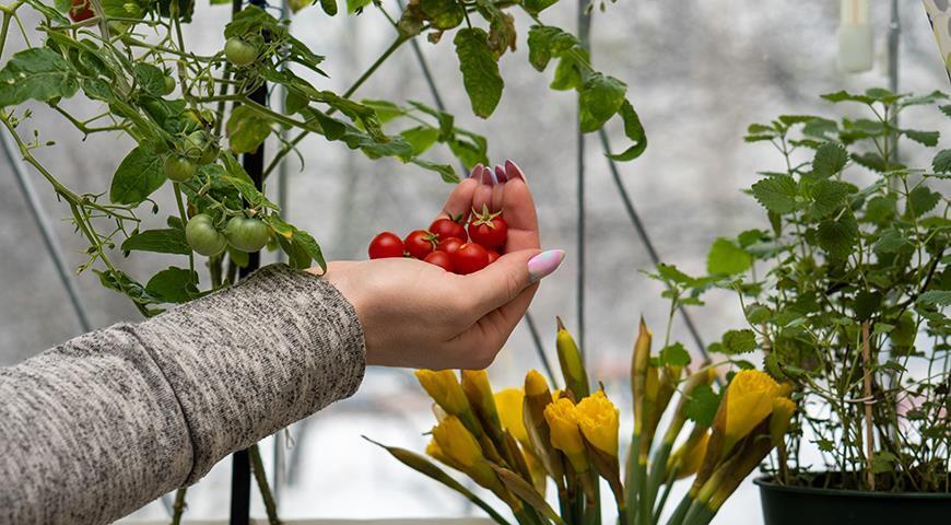 Помидоры дадут урожай через четыре месяца, но им нужно много воды и света, поэтому советуем купить для них фитолампу.