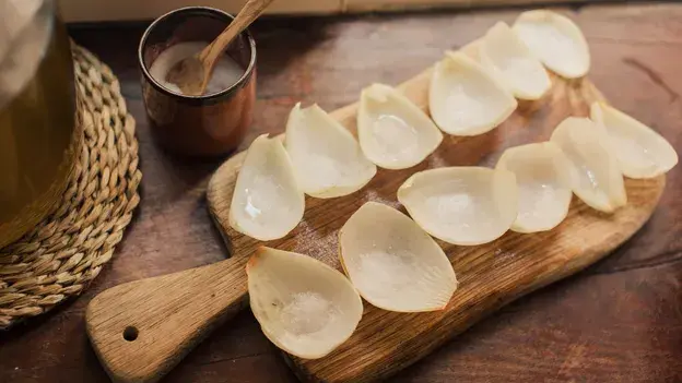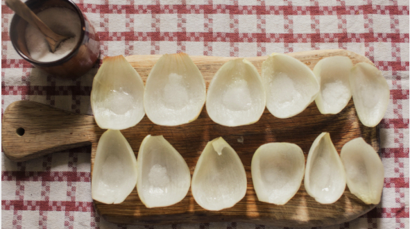 Нарежьте среднюю луковицу на четвертинки и положите 12 самых крупных кусочков на деревянную разделочную доску в два параллельных ряда. Верхний ряд - с января по июнь, нижний - с июля по декабрь. Посыпьте каждый ломтик щепоткой мелкой не йодированной соли и оставьте доску на подоконнике на востоке с открытым окном. На рассвете занесите доску в дом и сразу же проанализируйте лук.