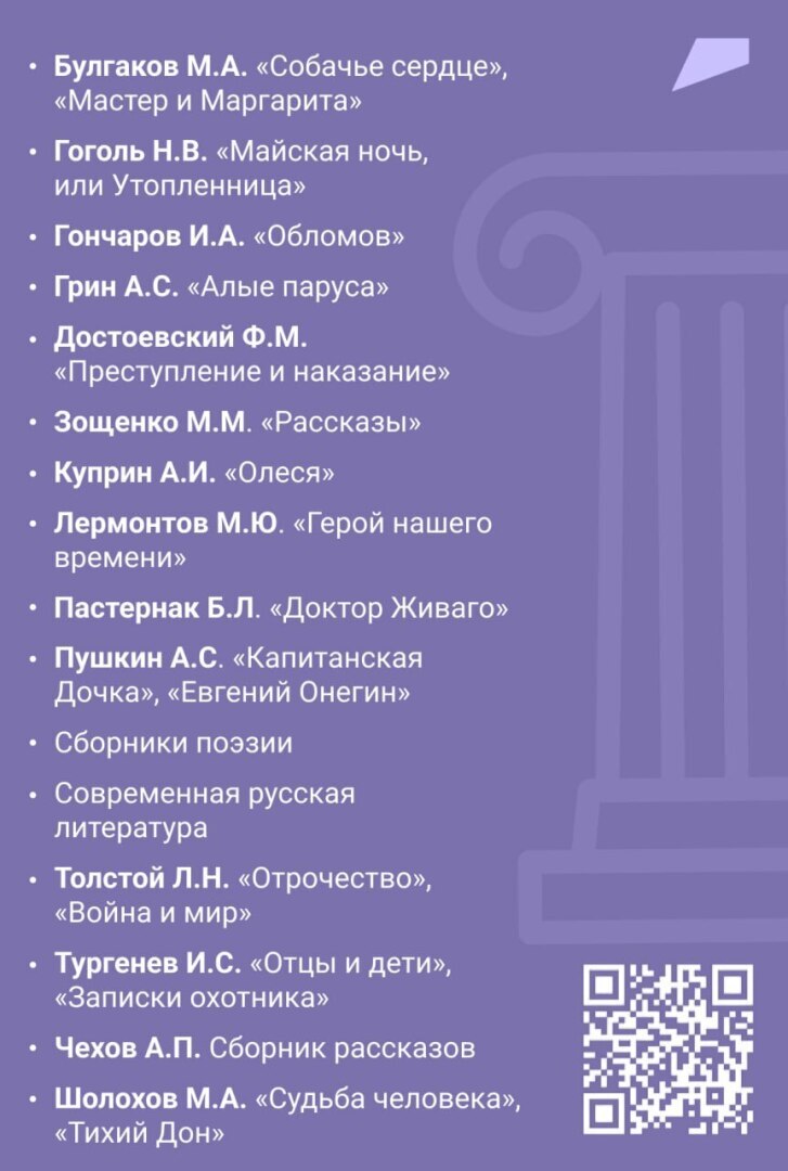 - купить или найти в своем резерве дома книгу из списка. Книга может быть как новой, так и б/у, но в хорошем состоянии;