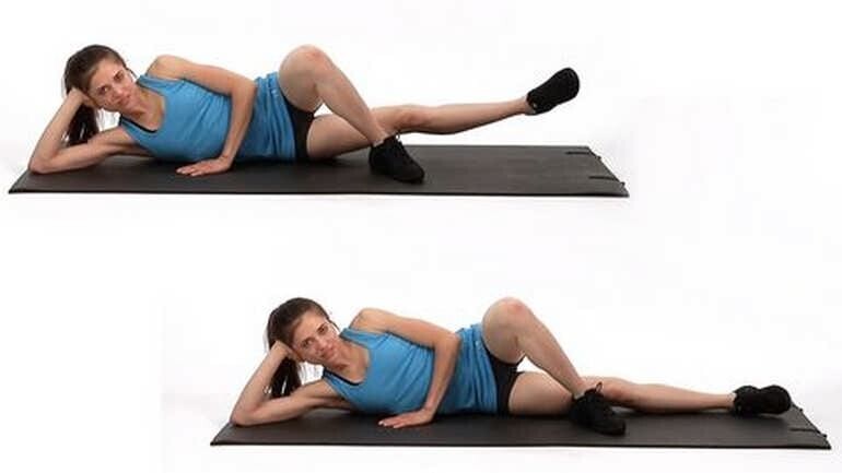 Постепенно перевернитесь так, чтобы вы отдыхали на другом боку. Повторите упражнение, вытянув другую ногу, чтобы закончить один подход. Повторите этот подъем 10 раз; сделайте это по три подхода на каждую сторону, чередуя стороны.