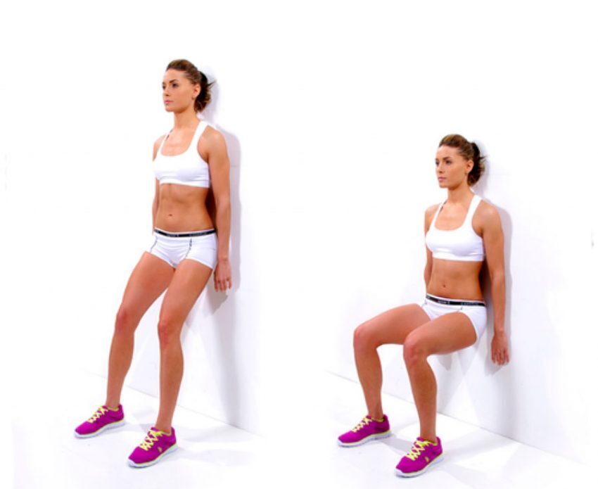 Чтобы сделать присед у стены, прислонитесь спиной к плоской стене и согните колени под углом 45 градусов. Задержитесь в этом положении на 30 секунд, затем встаньте и отдохните. Сделайте четыре подхода по 10 повторений.
