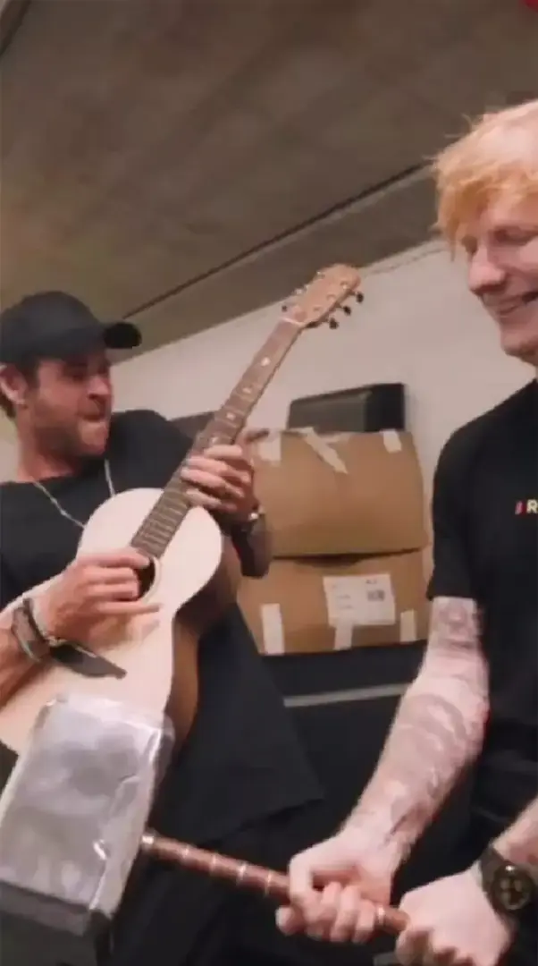 Крис Хемсворт и Эд Ширан «Обменяли» молот Тора на сценическую гитару