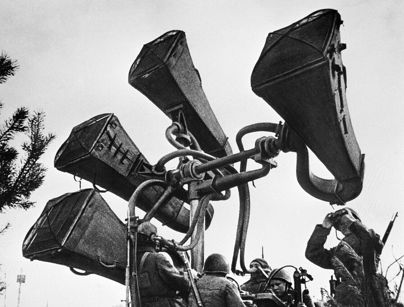 Наряду с радарами основным методом обнаружения вражеских самолетов были так называемые звуковые детекторы. Специально отобранные военнослужащие - “подслушивающие” - пытались уловить гул. Команды, работающие с детекторами, вращали их до тех пор, пока звук в ушах эксперта по прослушиванию не стал равномерным по интенсивности. Обнаружив приближающегося врага, он немедленно предупреждал своих товарищей, а затем лучи многочисленных прожекторов обшаривали небо в поисках целей, в то время как зенитные орудия приводились в боевую готовность.