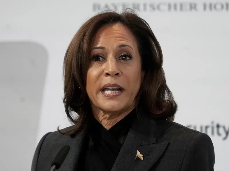 Вице-президент США Камала Харрис выступает на Мюнхенской конференции по безопасности в Мюнхене, суббота, 18 февраля 2023 г. 59-я Мюнхенская конференция по безопасности (MSC) проходит с 17 по 19 февраля 2023 г. в Bayerischer Hof Отель в Мюнхене.