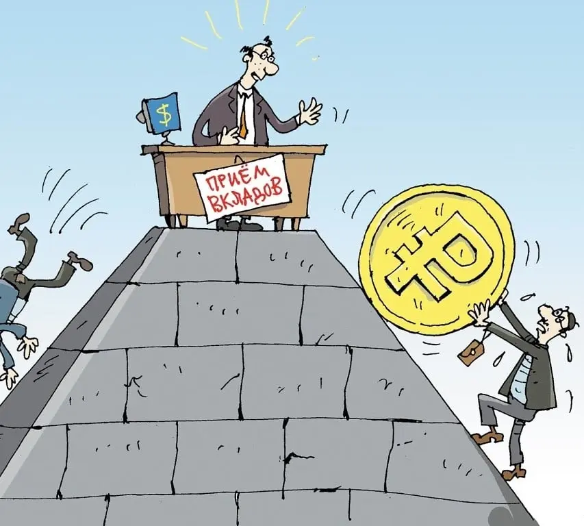 Финансовые пирамиды запрещены в России. Так эти "люди" по-другому приспособились лишать других их финансов. Так же есть статья о мошенничестве, где любой ценой пытаются завладеть материальной частью человека.